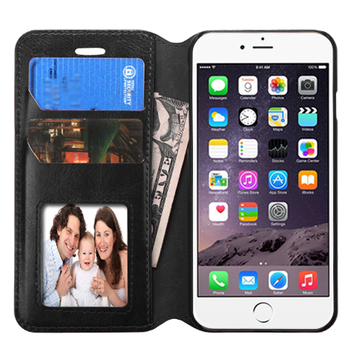 The Black wallet allows you to carry a couple of credit cards in the holder as well as your Apple iPhone 6 Plus and 6s Plus phone. Keep your Apple iPhone 6 Plus and 6s Plus phone secure, protected and easy to travel with. Magnetic closure firmly keeps the case closed.
