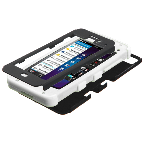 The Black and White case is a 2 layer case that keeps your Blackberry Z10 well protected. The Blackberry Z10 gets fitted with the first layer of protection which is a rubberized silicone case that your phone sits firmly in which absorbs shocks and bumps keeping your phone well protected. The second layer is a hardened shell with a Black and White design to it that snaps over the first layer and keeps your Blackberry Z10 well protected without adding bulkiness to the phone. The Blackberry case provides full access to the charging port, volume buttons and speaker and camera lenses so your Blackberry Z10 phone is fully functional while in the case.