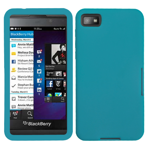 The Teal Blackberry Z10 silicone skin wraps around your Blackberry Z10 phone to keep it protected and free from scratches