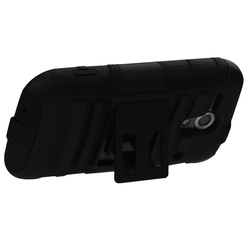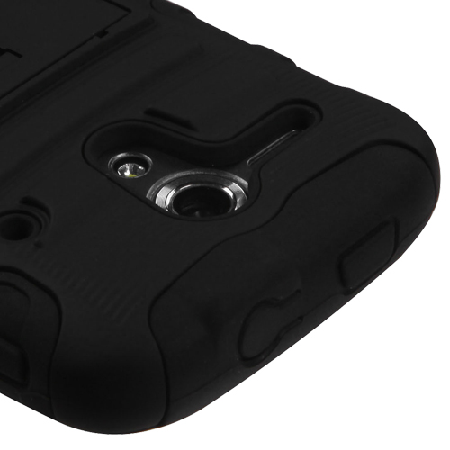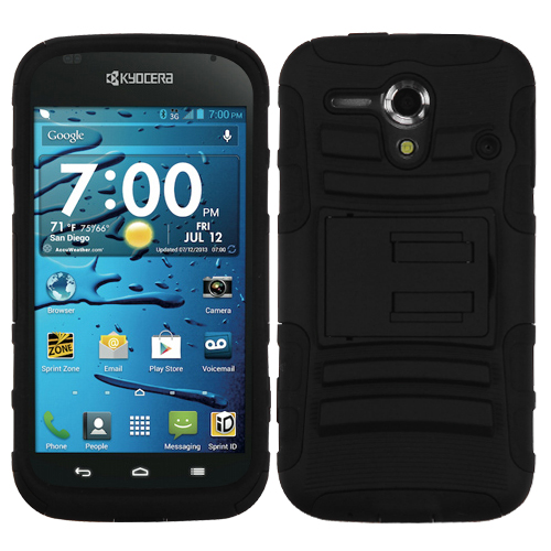 The Black case is a two part case made of rubber as well as a polycarbonate shell to keep your Kyocera Hydro Edge armor clad, protected. The Kyocera Hydro Edge case also features a fold out stand that tucks seamlessly into the case when not in use. The Kyocera case provides full access to the charging port, volume buttons and speaker and camera lenses so your Kyocera Hydro Edge phone is fully functional while in the case.
