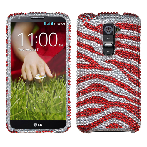 Keep your LG G2 phone protected and show some style with this designer case. The Red Zebra rhinestone case keeps your LG G2 from getting scratched or damaged. The case is perfectly designed to allow you access to the charging port, volume buttons and speaker and camera lens so that your LG G2 phone is fully functional while in the case.