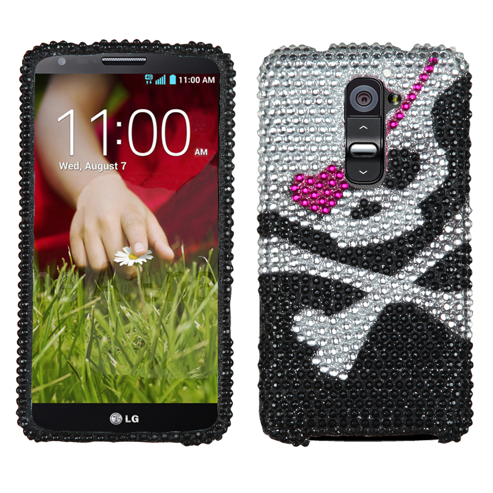 Keep your LG G2 phone protected and show some style with this designer case. The Skull rhinestone case keeps your LG G2 from getting scratched or damaged. The case is perfectly designed to allow you access to the charging port, volume buttons and speaker and camera lens so that your LG G2 phone is fully functional while in the case.