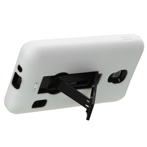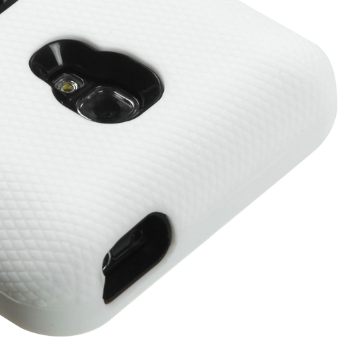 The White case is a 2 layer case that keeps your LG Optimus F6 well protected. The first layer of the case is a hardened shell to keep your LG Optimus F6 phone protected and secure. The second layer of the case provides a soft rubberized feel for easy grip. The LG Optimus F6 case also features a fold out stand that allows you to rest your phone vertically or horizontally for multimedia viewing. The LG case provides full access to the charging port, volume buttons and speaker and camera lenses so your LG Optimus F6 phone is fully functional while in the case.