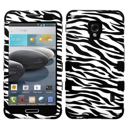 The Zebra case is a 2 layer case that keeps your LG Optimus F6 well protected. The LG Optimus F6 gets fitted with the first layer of protection which is a rubberized silicone case that your phone sits firmly in which absorbs shocks and bumps keeping your phone well protected. The second layer is a hardened shell with a Zebra design to it that snaps over the first layer and keeps your LG Optimus F6 well protected without adding bulkiness to the phone. The LG case provides full access to the charging port, volume buttons and speaker and camera lenses so your LG Optimus F6 phone is fully functional while in the case.