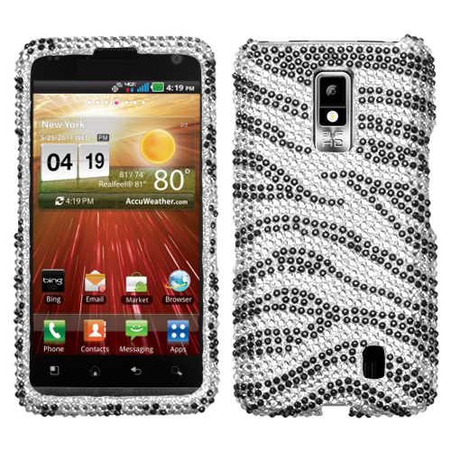 LG Spectrum Black Zebra Rhinestone Phone Case