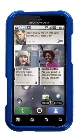 The blue Motorola Defy case snaps onto the back and front of your Motorola Defy to keep it well protected against scratches and damage and allows full functionality of your phone.