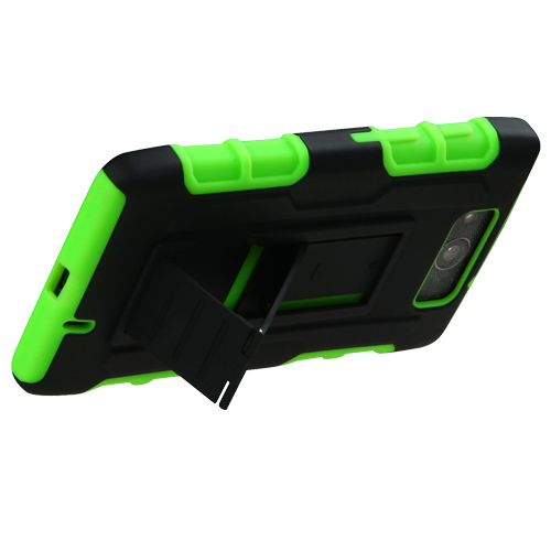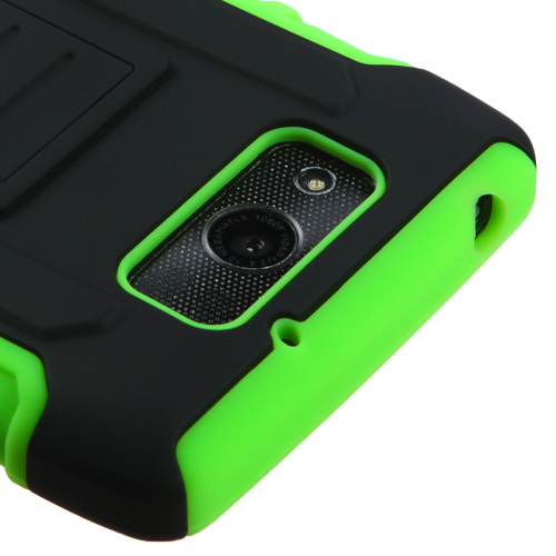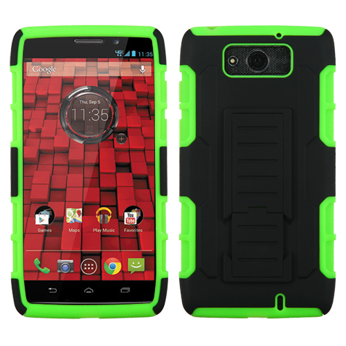 The Green case is a two part case made of rubber as well as a polycarbonate shell to keep your Motorola Droid Ultra armor clad, protected. The Motorola Droid Ultra case also features a fold out stand that tucks seamlessly into the case when not in use. The Motorola case provides full access to the charging port, volume buttons and speaker and camera lenses so your Motorola Droid Ultra phone is fully functional while in the case.