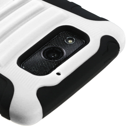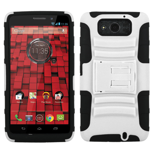 The White case is a two part case made of rubber as well as a polycarbonate shell to keep your Motorola Droid Ultra armor clad, protected. The Motorola Droid Ultra case also features a fold out stand that tucks seamlessly into the case when not in use. The Motorola case provides full access to the charging port, volume buttons and speaker and camera lenses so your Motorola Droid Ultra phone is fully functional while in the case. Currently offered on: Verizon