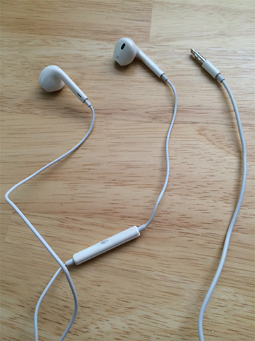 The Apple ear bud for the Verizon Apple iPhone 4 features an in-line microphone on the cord. The stereo headset features a high performance microphone fitted with a windscreen for added clarity that is positioned inline on the cabling for the right earphone. The microphone capsule also serves as a send/ end button, for answering and ending of calls, and it even controls basic music playback.