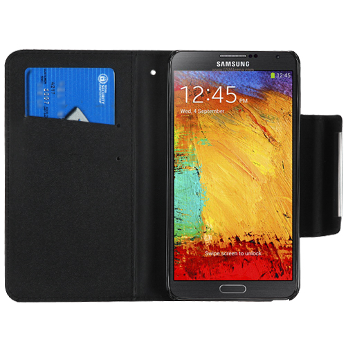 The Black wallet is perfect for those that like to travel light with there Samsung Note 3 phone. The Samsung Note 3 phone as well as a couple of credit card slots make this a perfect way to keep your phone secure, protected and easy to travel with. Magnetic closure firmly keeps the case closed.