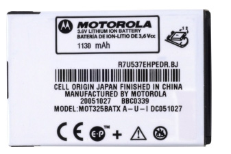 The original Motorola MotoRIZR Z6tv battery provides 1130 milliamps of power. This battery is backed with a one year warranty. Manufactured by Motorola.
